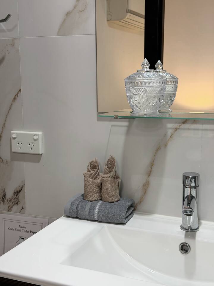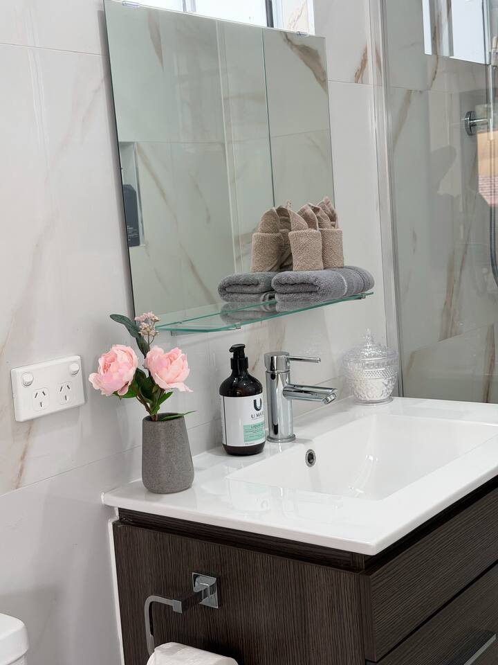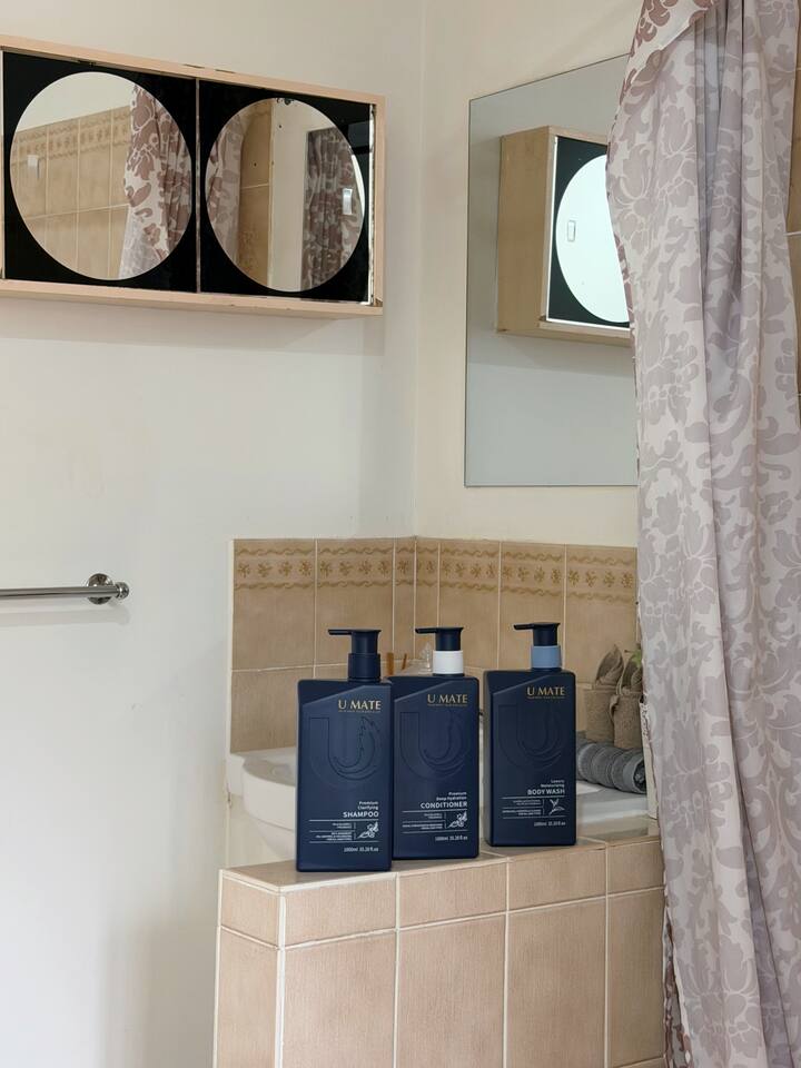 Property Features: • Main House: - Three bedrooms, including one with an ensuite. - one powder room inside the laundry - Additional bathroom shared by two bedrooms. - Please note NO aircon for the kitchen/dining area, but feel free to turn on the aircon in the bedrooms, and open the door to let the cool air flow to the living/ dinning space • 1-Bedroom Unit: - Bedroom with ensuite. - Small living room with dining and kitchen facilities. - the sofa in the living/dinning area can convert to a sofa bed to sleep one person - Please note NO aircon for the kitchen/dining area, but feel free to turn on the aircon in the bedrooms, and open the door to let the cool air flow to the living/ dinning space - stand alone fans also provided for the kitchen/dinning area - The maximum capacity for this property is 10 guests. An additional option is available for two people to use the sofa bed, subject to an extra fee of $50.